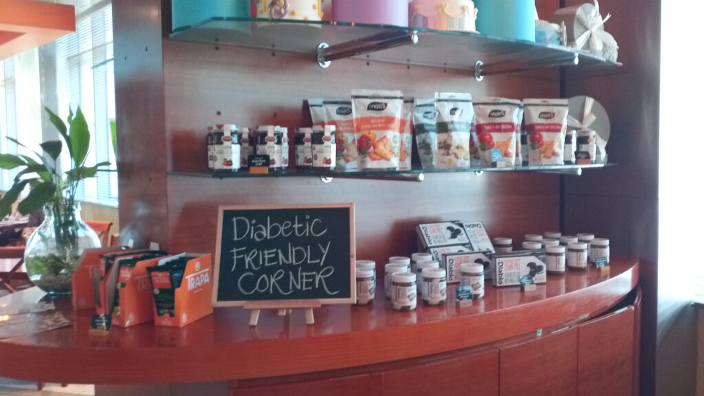 Lulu’s has a wide selection of Diabetic friendly products available in all their stores and the Marriott offers Diabetic options on most of their food menu’s.